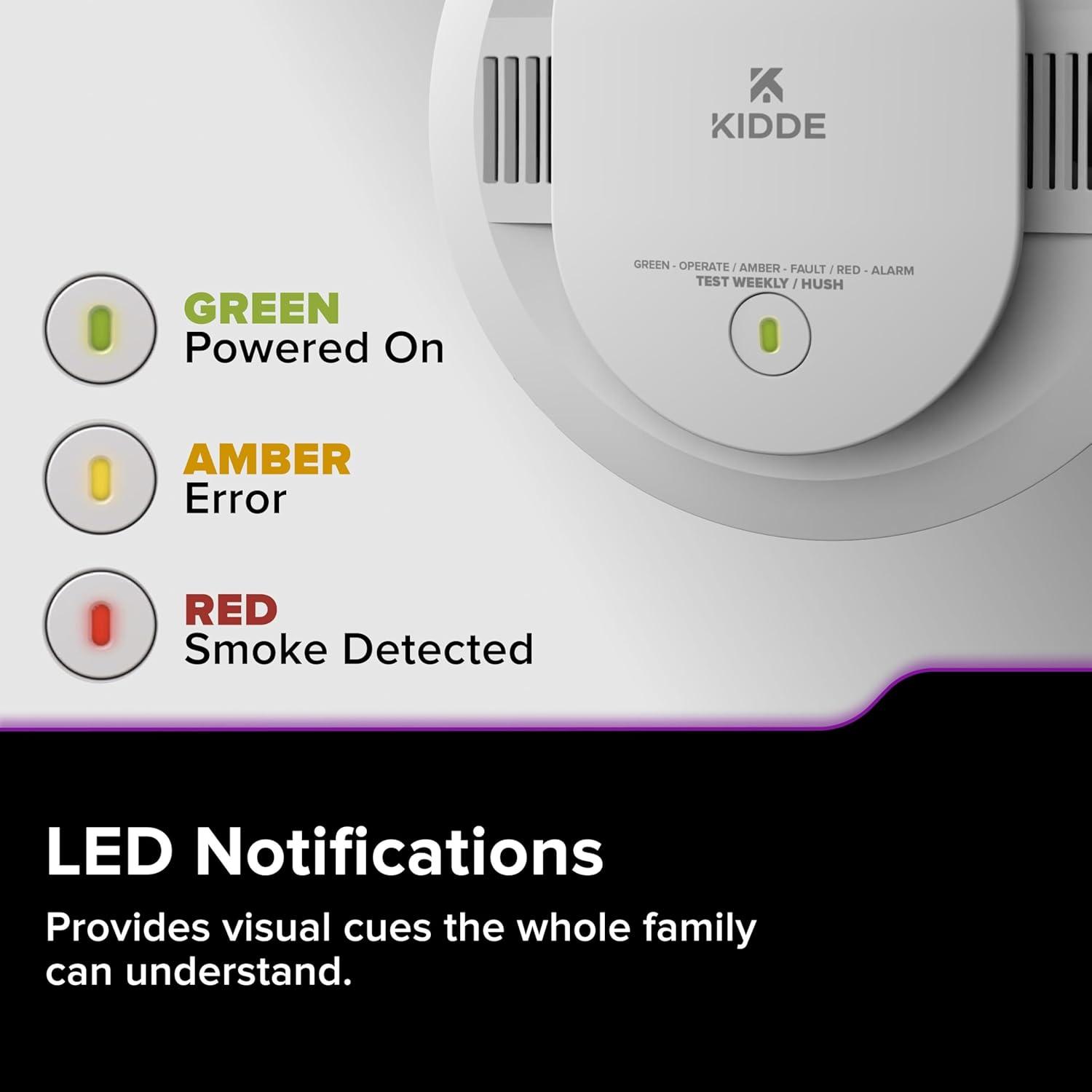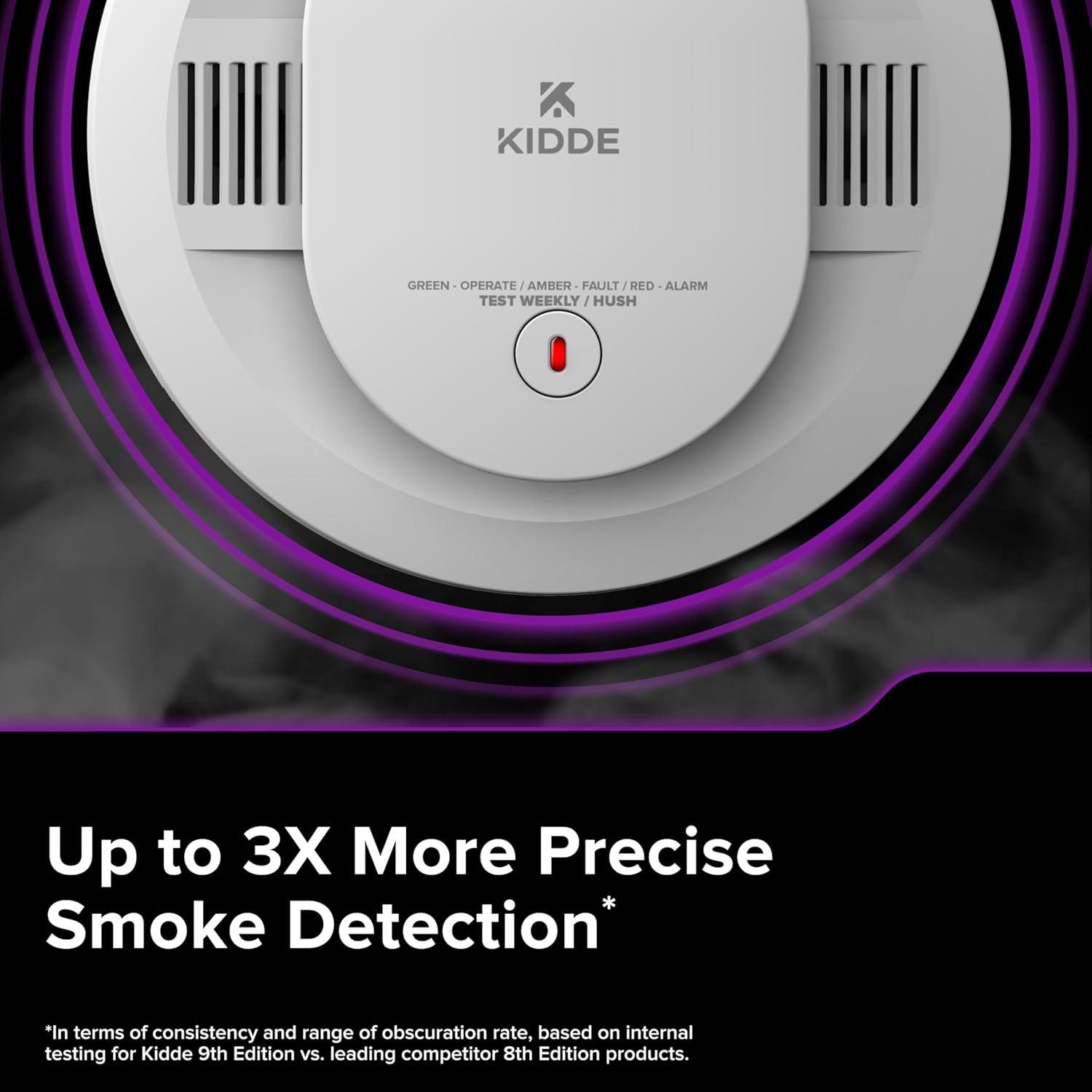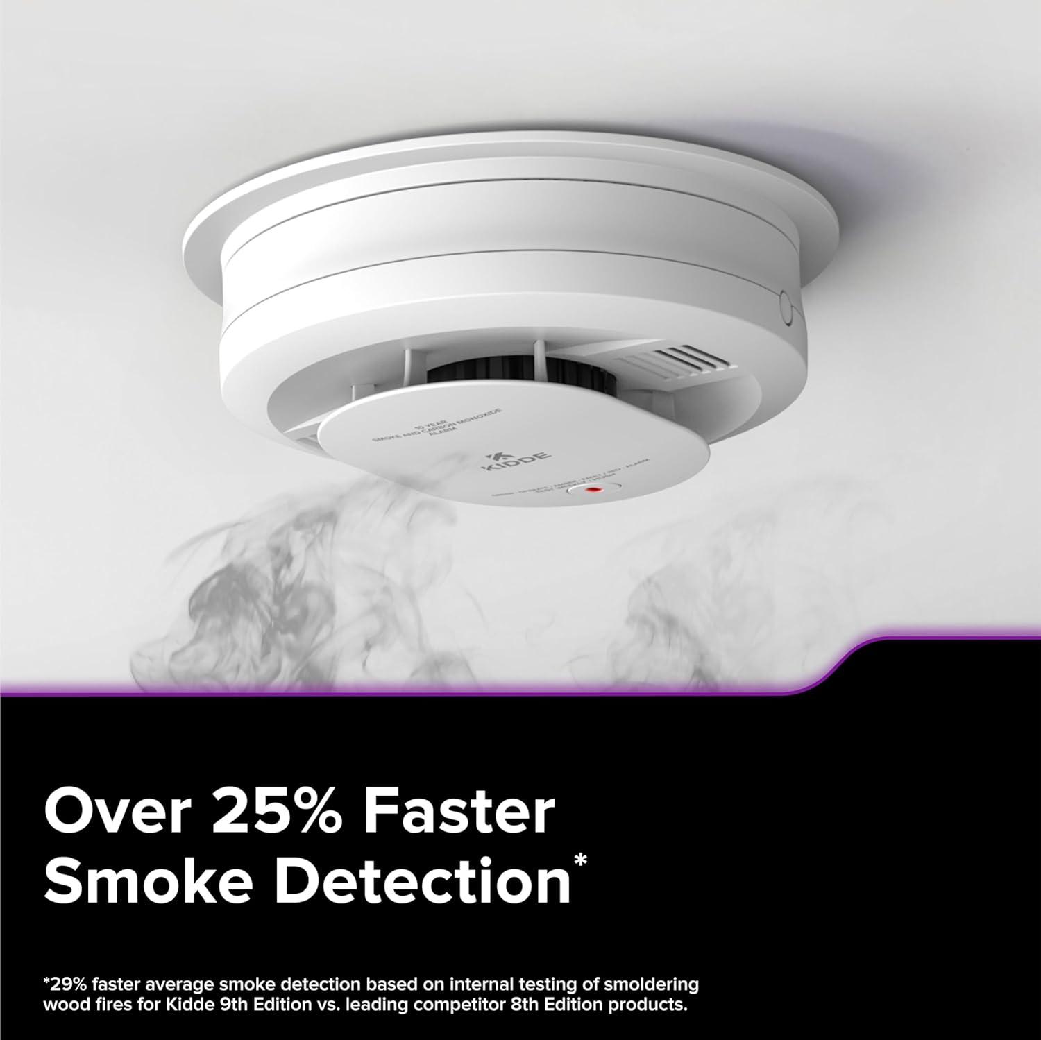 Help protect what matters most with the Hardwired Kidde App Enabled Smart Smoke and Carbon Monoxide Detector, AA Battery Backup, Voice Alerts, Interconnected Alarm. Experience whole home smart connectivity by adding one smart alarm to your existing Kidde hardwired alarms** and get real-time notifications at home or away, including smoke, CO and low battery warnings. Just download the Kidde app to begin alarm setup — no additional devices required. This Kidde app enabled smoke and CO alarm’s enhanced sensing technology features over 25% faster smoke detection*** and reduces false alarms* often caused by cooking. Clear voice alerts announce “Fire!” or “Warning, Carbon Monoxide” to help identify which hazard is detected in your home. Powered by 120V AC wiring with two AA backup batteries (included) to help ensure you’re protected during outages. The hush button ensures your smoke and CO alarm is working and allows you to silence the alarm. * When compared to prior Kidde generations of smoke alarms. ** Different models offer different interconnection options and requirements. Check the User Guide for more info.* When compared to prior Kidde generations of smoke alarms. ** Different models offer different interconnection options and requirements. Check the User Guide for more info. *** In terms of consistency and range of obscuration rate, based on internal testing for Kidde 9th Edition vs. leading competitor 8th Edition products.
